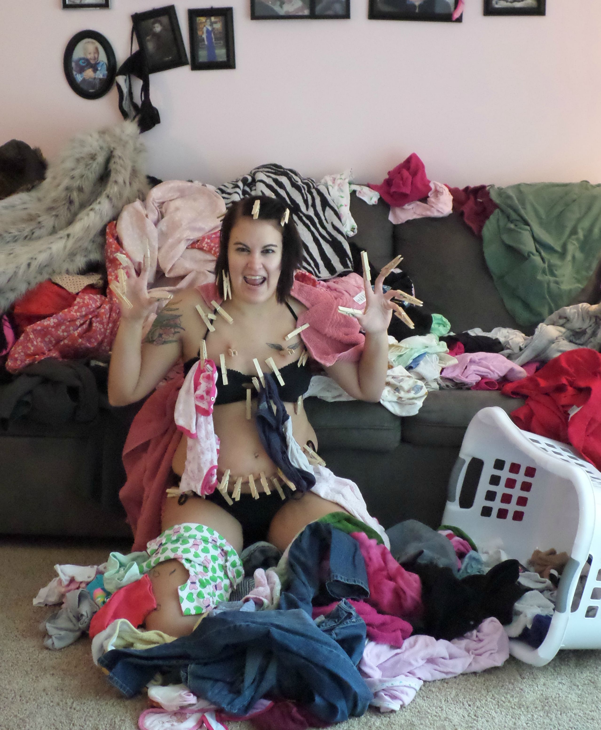 #54 Covering your unmentionables with something you deem appropriate, how many clothespins can you fit (pinched) on the rest of your body? We know; it hurts. We’re sorry, but no pain, no gain!